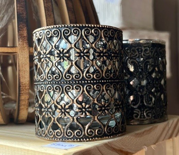 Vela aromática 10x7cm diámetro vidrio y metal